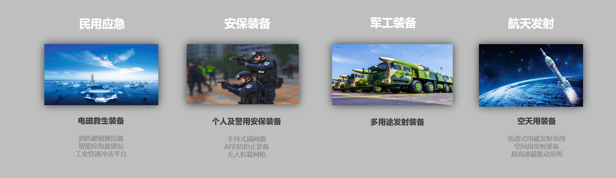 从基础技术、到个人产品、到航天军工装备,我们正在打造一个电磁技术产业